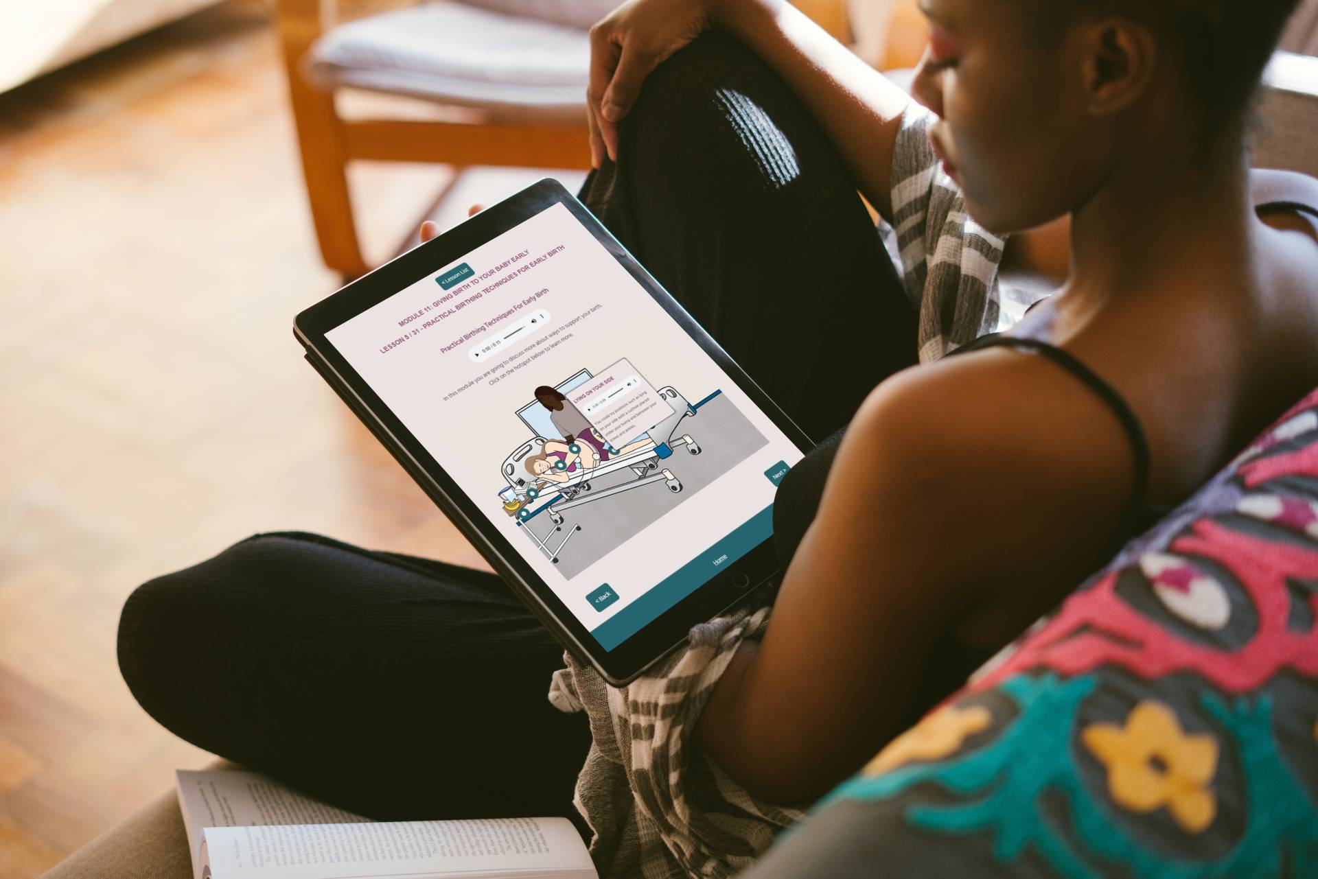 The Real Birth Digital Programme links into any digital maternity notes system or hospital app. Midwives can refer women to the technology which is accessed directly through a woman's digital maternity notes or a unique QR code using android, iPhone, tablet or computer; alternatively, where someone is digitally excluded, the programme can be downloaded and printed. Our continuing development involves co-creation with service users of new modules. Evidence-based information is regularly reviewed and updated and presented in a holistic way, supporting findings from the 2020 Ockenden Review and NICE guidance on birth planning conversations.